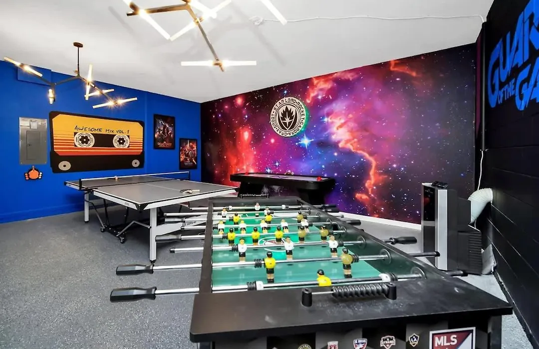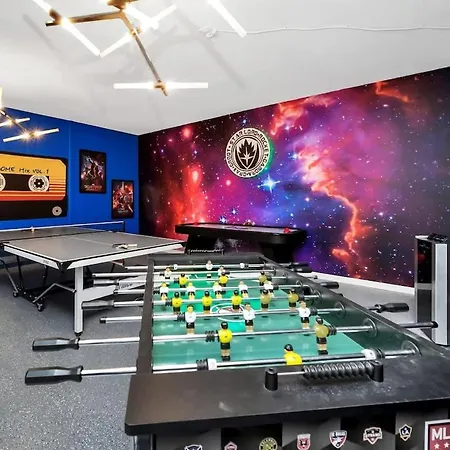 Located within minutes of Mystic Dunes Golf Course, the 5-bedroom Newly Upgraded Disney Themed Vacation Retreat Villa offers quick access to various city attractions in the vicinity.