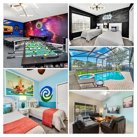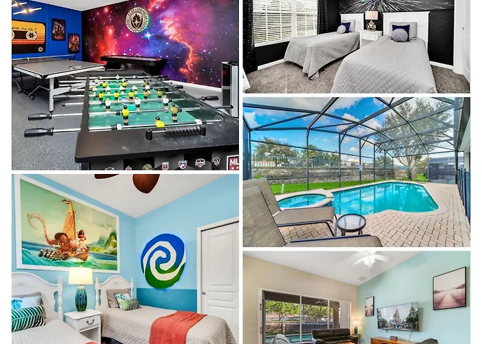 The 5-bedroom Newly Upgraded Disney Themed Vacation Retreat Orlando villa provides easy access to various city attractions, such as the Windsor Hills, situated nearly 5 minutes' walk away.